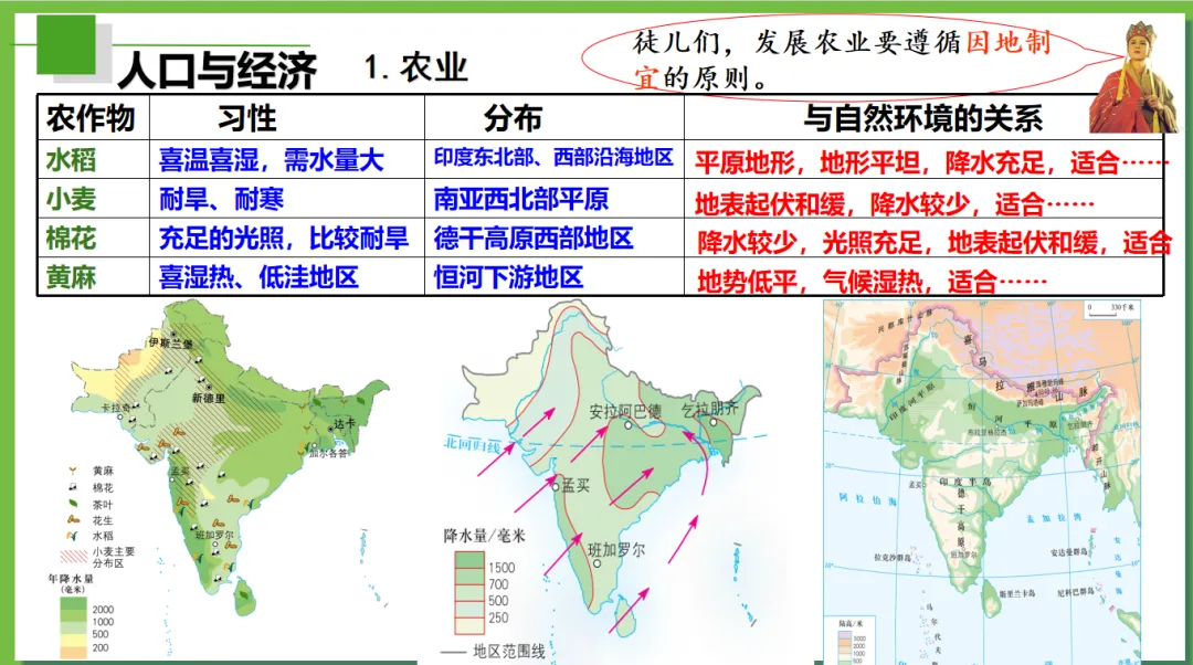 本课以唐僧师徒西天取经为主线,创设“取经启程(定位南亚)→ 高山险阻—穿地形→风雨考验—识气候→ 途经村落—看农业→ 参拜圣寺(悟文化)→ 取经归来(总特征)”故事线索,将南亚地理知识点(位置、地形、气候、河流、农业、宗教文化)融入师徒取经的每一个关键节点,实现“故事情境+地理知识+核心素养”三维融合,兼顾趣味性和知识性,适配初中地理课堂,帮助学生快速理解、记忆南亚区域特征,树立人地协调观和区域认知。