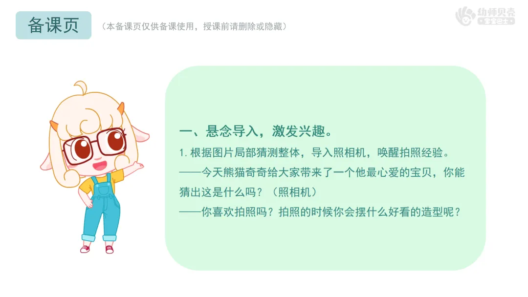 1.根据图片局部猜测整体,导入照相机,唤醒拍照经验。