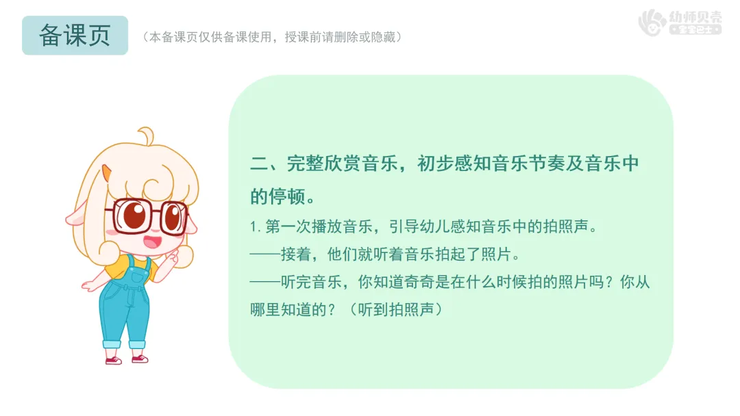 1.第一次播放音乐,感知音乐中的拍照声。