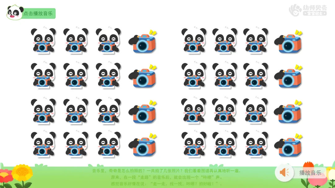 2.表扬能合上节奏并及时“拍照”的幼儿。