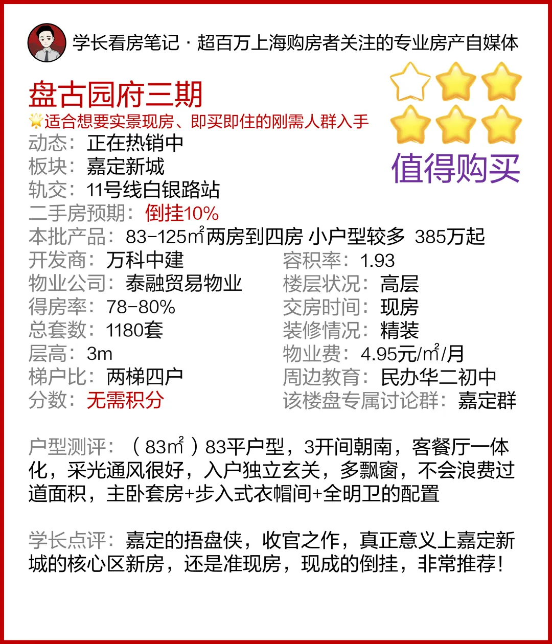 最新消息,嘉定新城「盘古园府」三期正在热销中!推出建面约83-125㎡两房到四房,总价385万起!