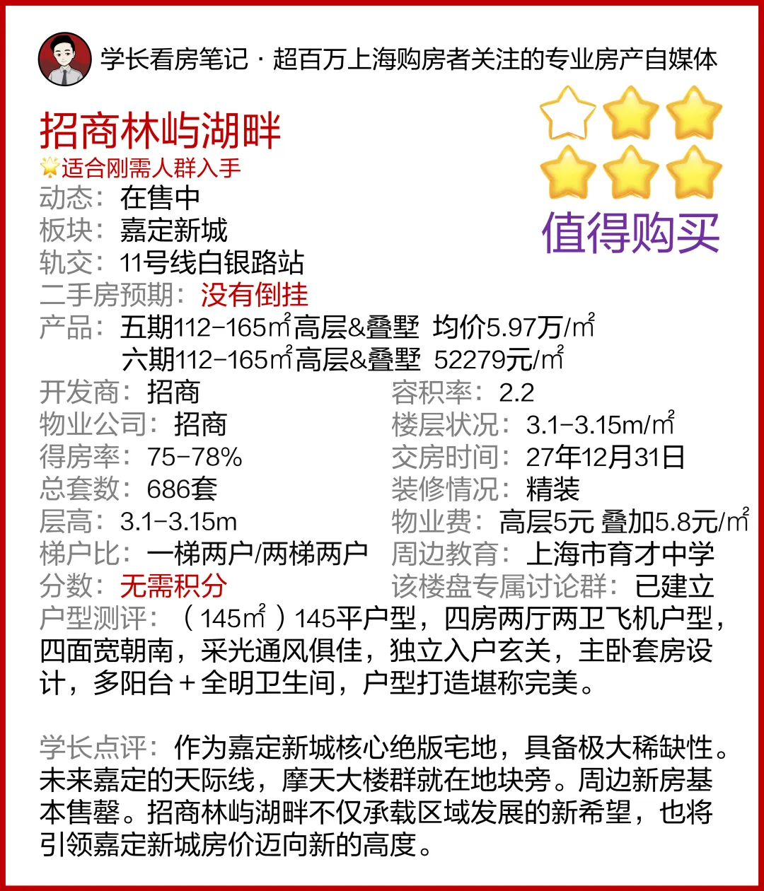 嘉定新城「招商林屿湖畔」在售中!建面约112-165㎡高层&叠墅,总价约490-1300万!