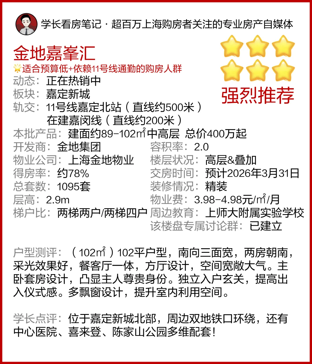 最新消息:嘉定新城「嘉定新城御花园」正在热销!推出建面约90㎡高层&157㎡叠加,过会均价45190元/㎡!