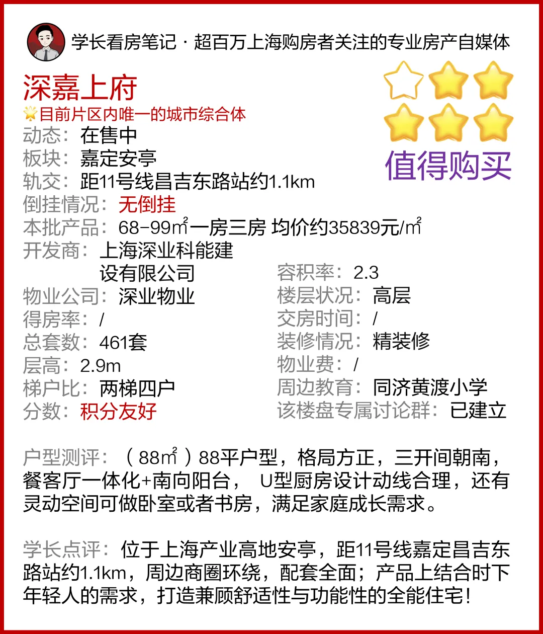 国企钜制+全屋精装+同济大学旁,「深嘉上府」正在认购中!内附一房一价表!