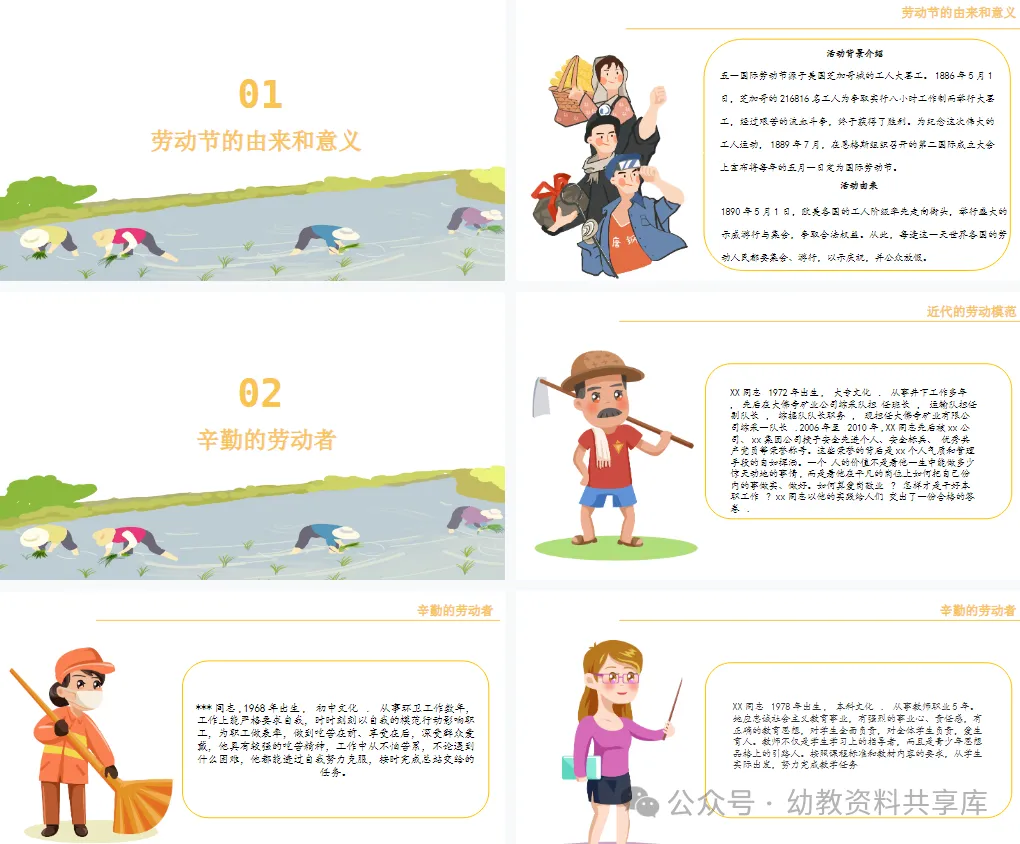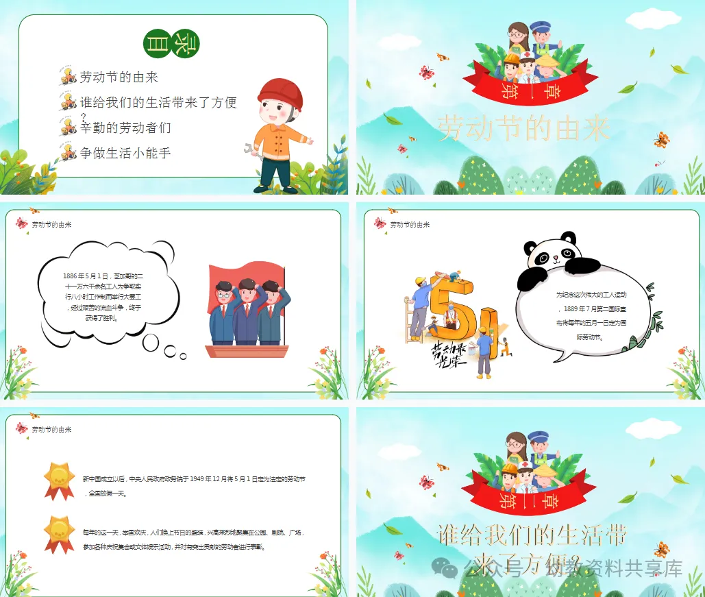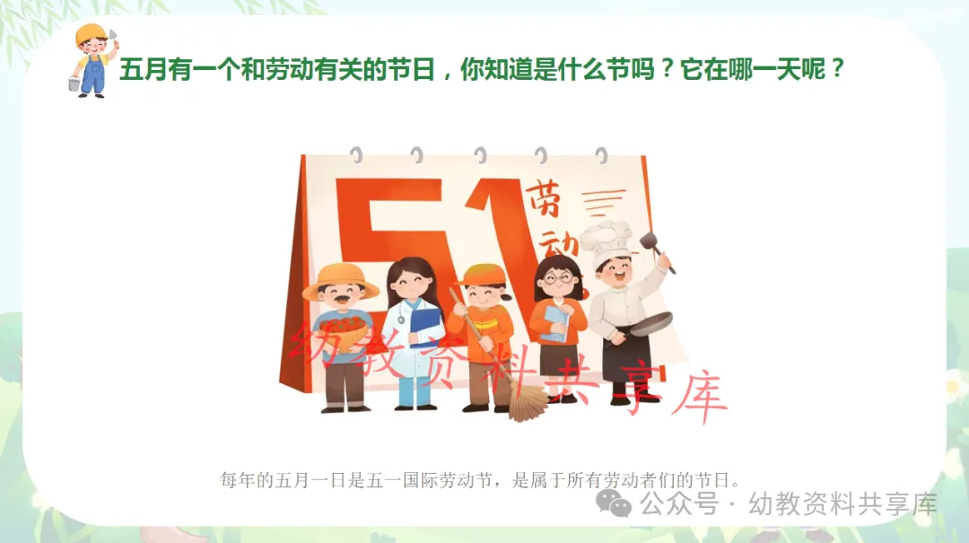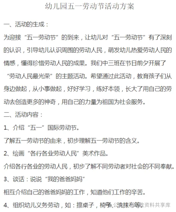 今天整理了五一活动资源包分享给大家(文末免费下载领取《幼儿园五一劳动节活动资源素材包》)