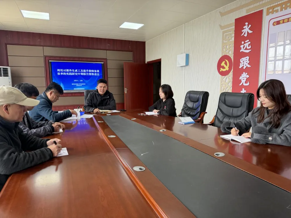 为扎实推进县级教育科学规划微型课题研究进程,精准梳理研究成效、破解实践难题,确保课题研究方向不偏、力度不减、成果落地,4月3日上午,嘉鱼县实验小学东街校区召开《利用AI课件生成工具提升教师备课效率的实践研究》课题中期研究报告暨推进会。校长尹继军、课题负责人王虎及全体课题组成员参加会议。