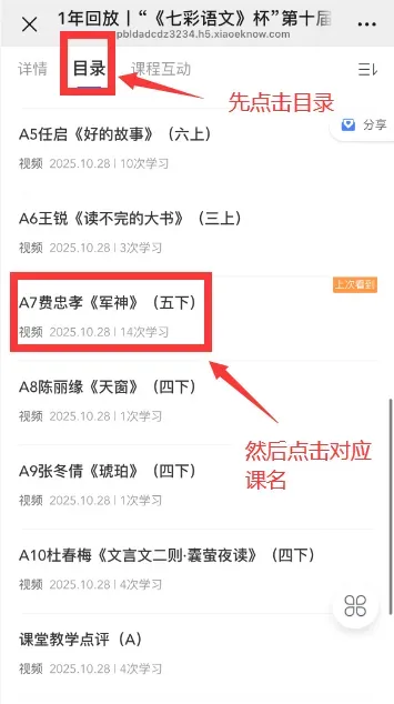 第一步:进入课程页面,点击“目录”,选择对应课名;