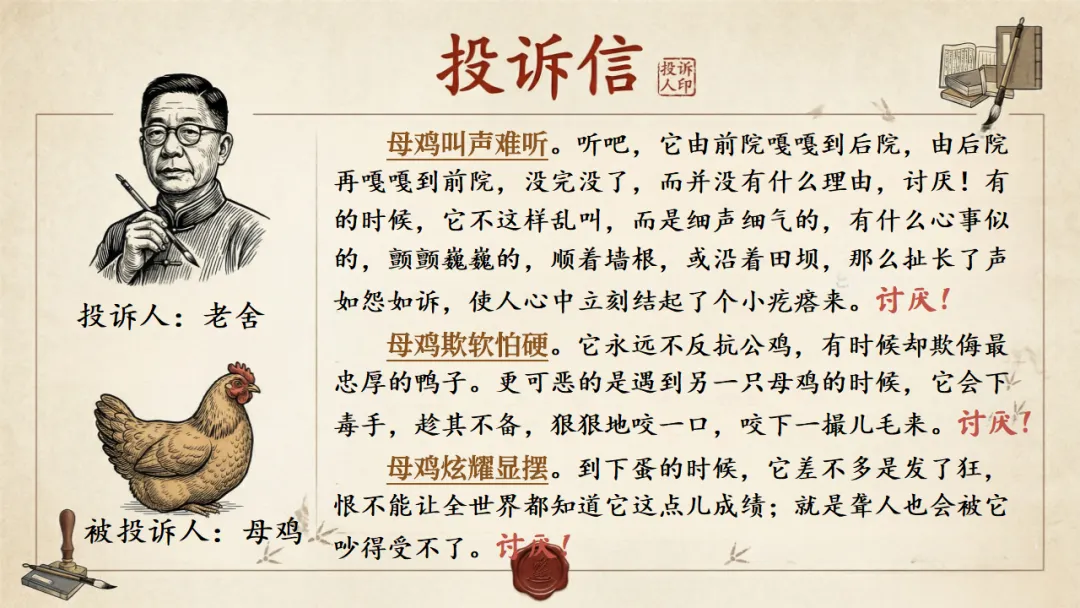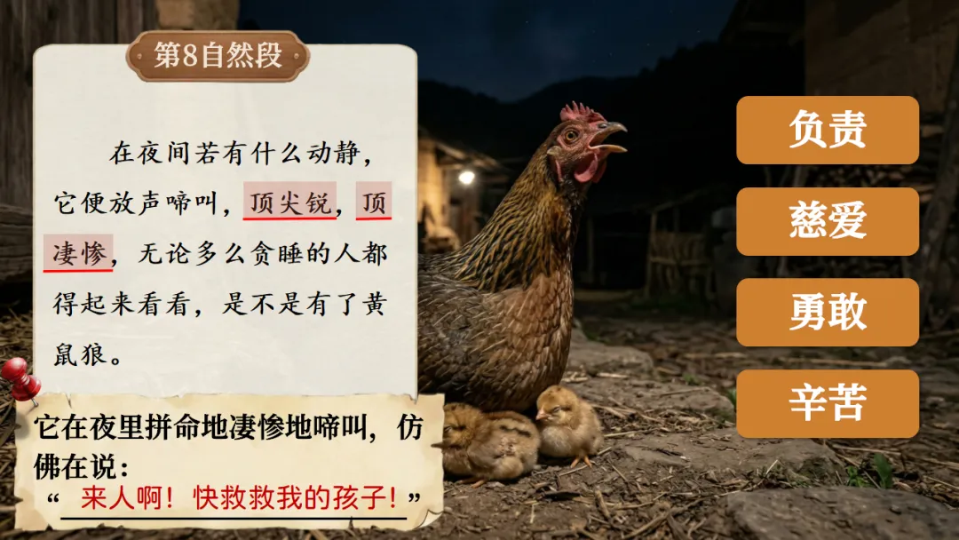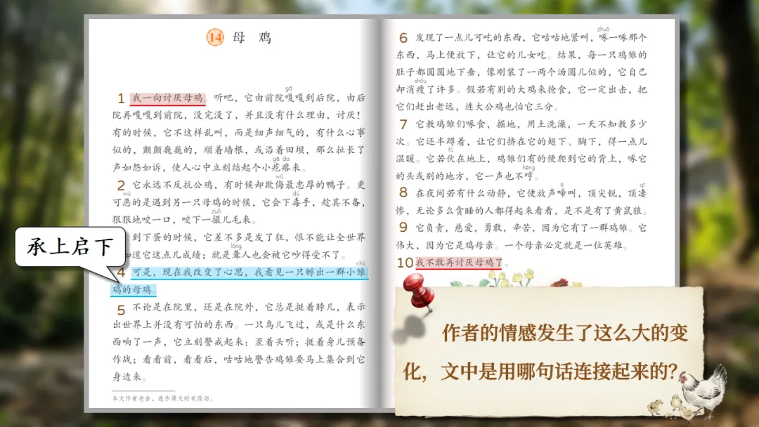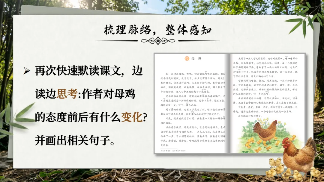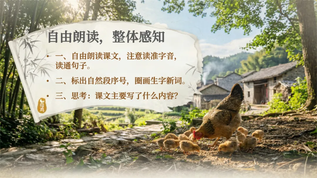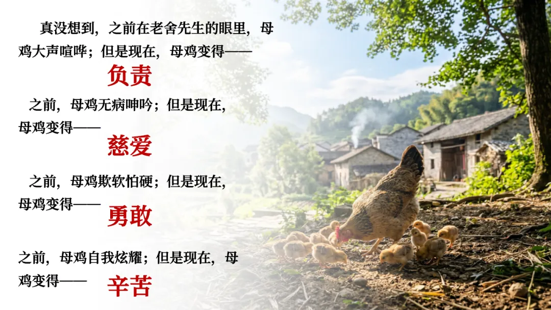 四下《母鸡》AI赋能课件 | 初闻啼声心生厌,再见护雏意存敬(课件+AI视频+教案)