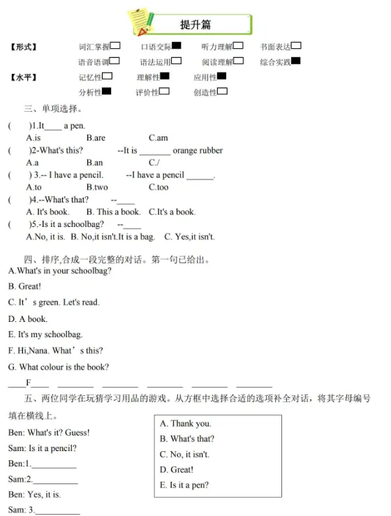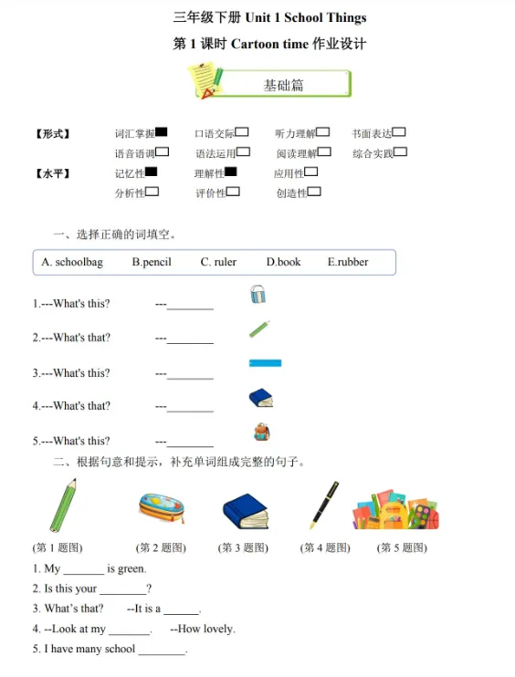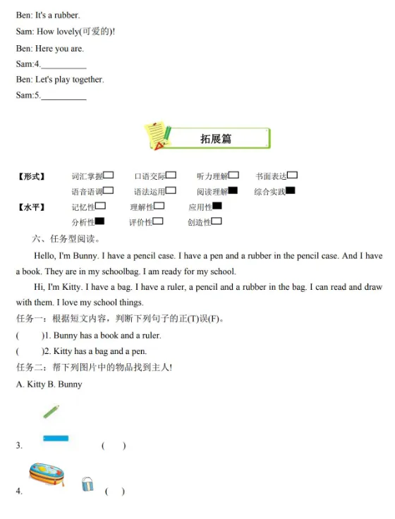 2026新版小学数学 北师 一年级下 教材习题答案【可下载打印】