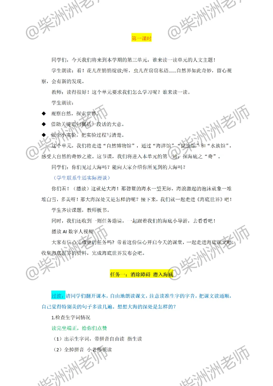 AI赋能!一下《海底世界》公开课课件+教案!海底奇幻世界宣讲员