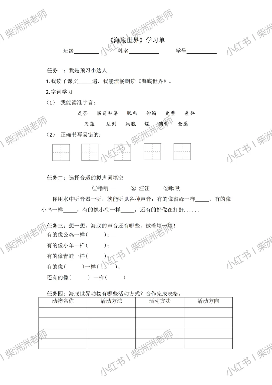 🌟任务2️⃣:探秘海底世界第二课时