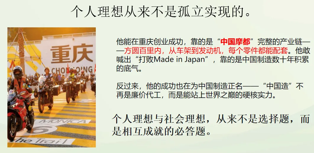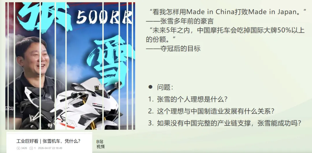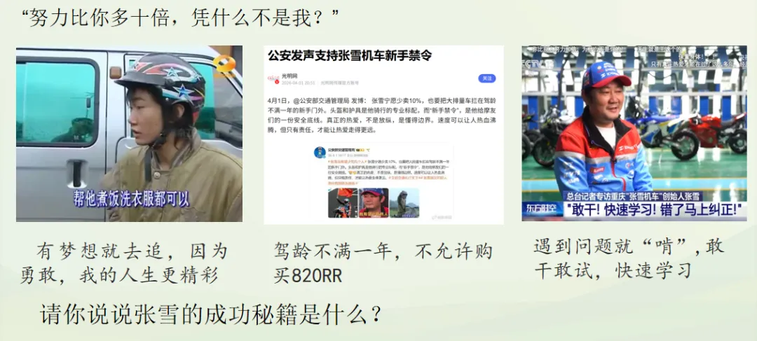首先,衷心感谢每一位阅读、点赞、转发上篇关于“张雪机车”案例教学文章的朋友。你们的关注,不仅是对我作为一名一线思政教师教学实践的认可,更让我看到大家对思政教育本身的热爱与思考。这份共鸣,是我继续做下去的最大动力。
