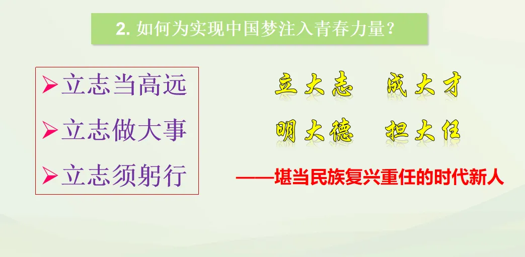 ② 喊出梦想 → 坚守底线 →20年死磕:立志当( )→立志当( )→ 立志( )