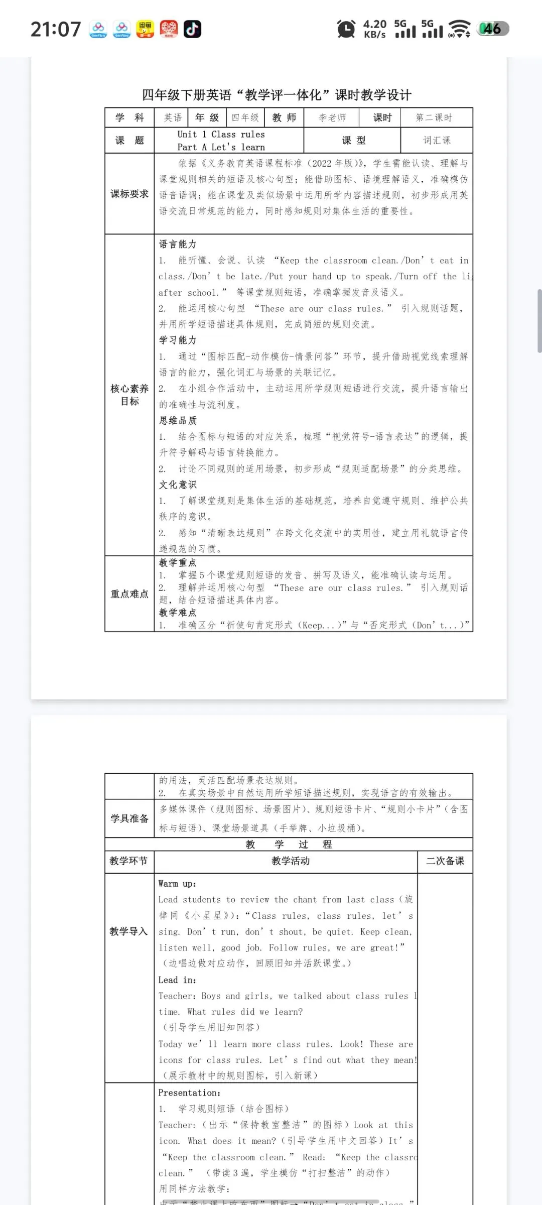 当前位置:首页>教案>新人教版四下“教学评一体化”全册教案
