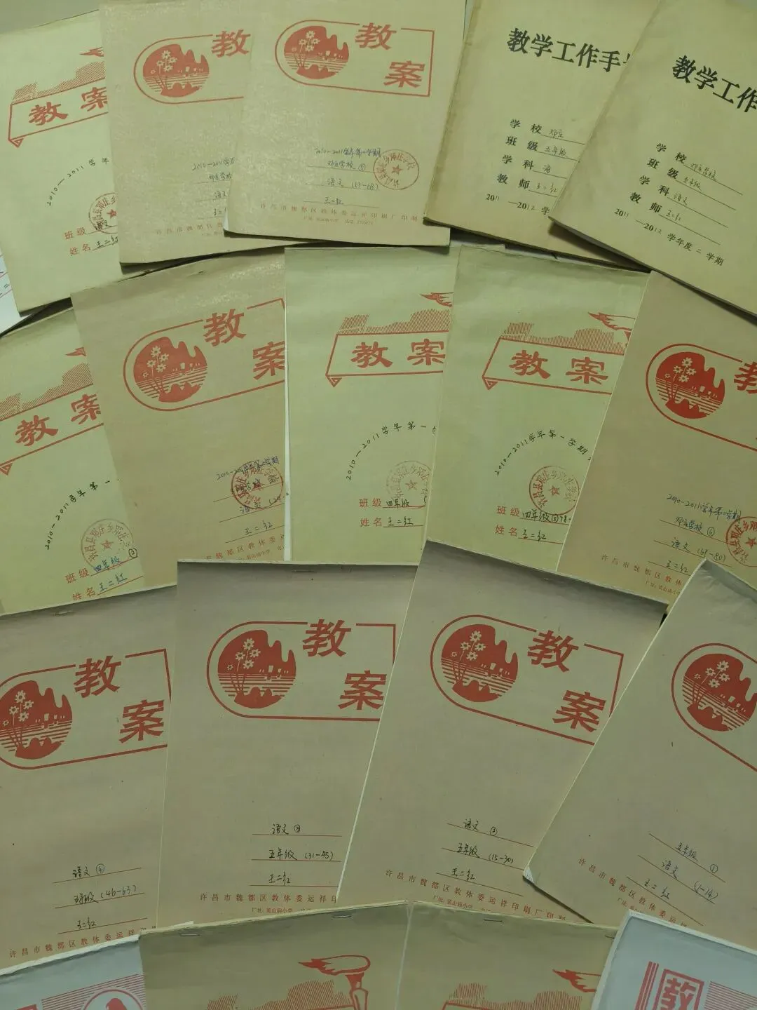 当我翻开13年前写的教案,看到封面上每学期80到85次——几乎每天都在进行深度备课。那时我34岁,正年轻,把所有精力都毫无保留地投入工作。20岁参加工作,写了14年的手写教案,随着时代发展,再以后就成电子教案,书头简案了。