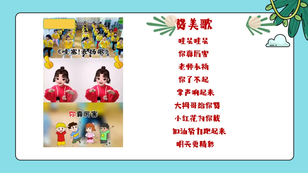 课堂的最后让我们一起来学一个手势舞蹈:《哇塞,表扬歌》