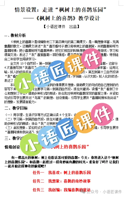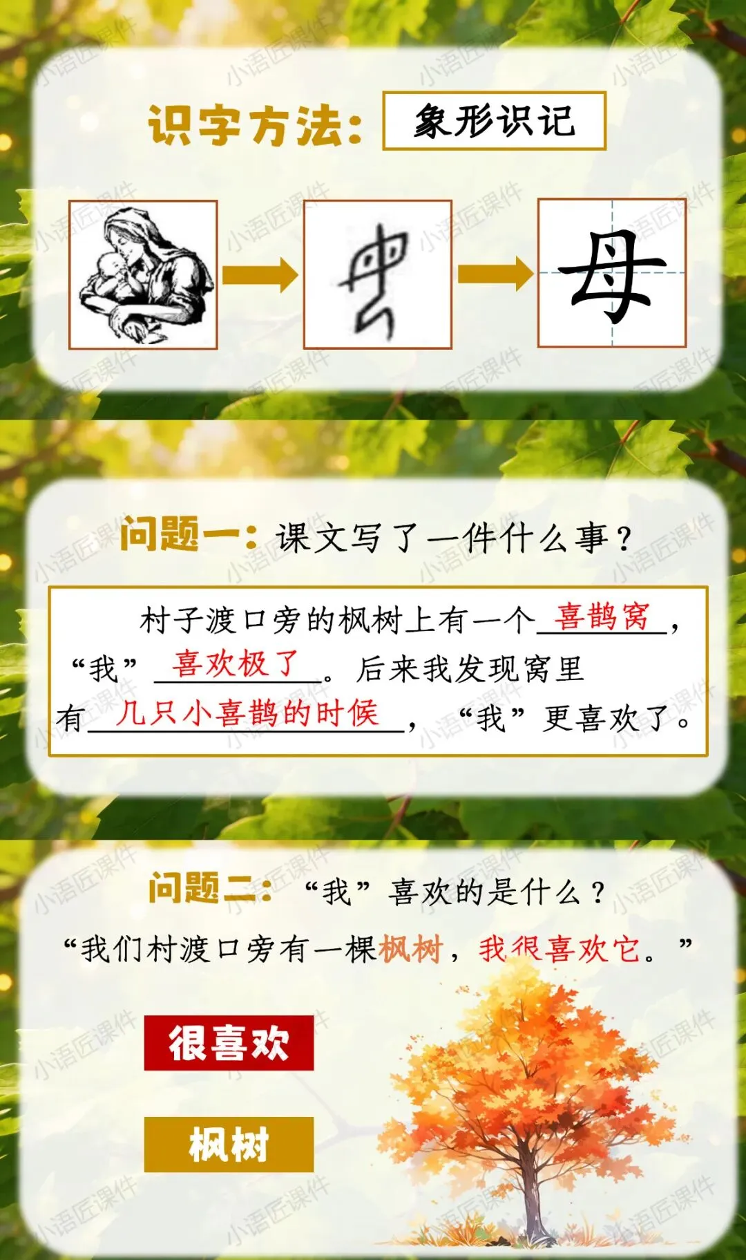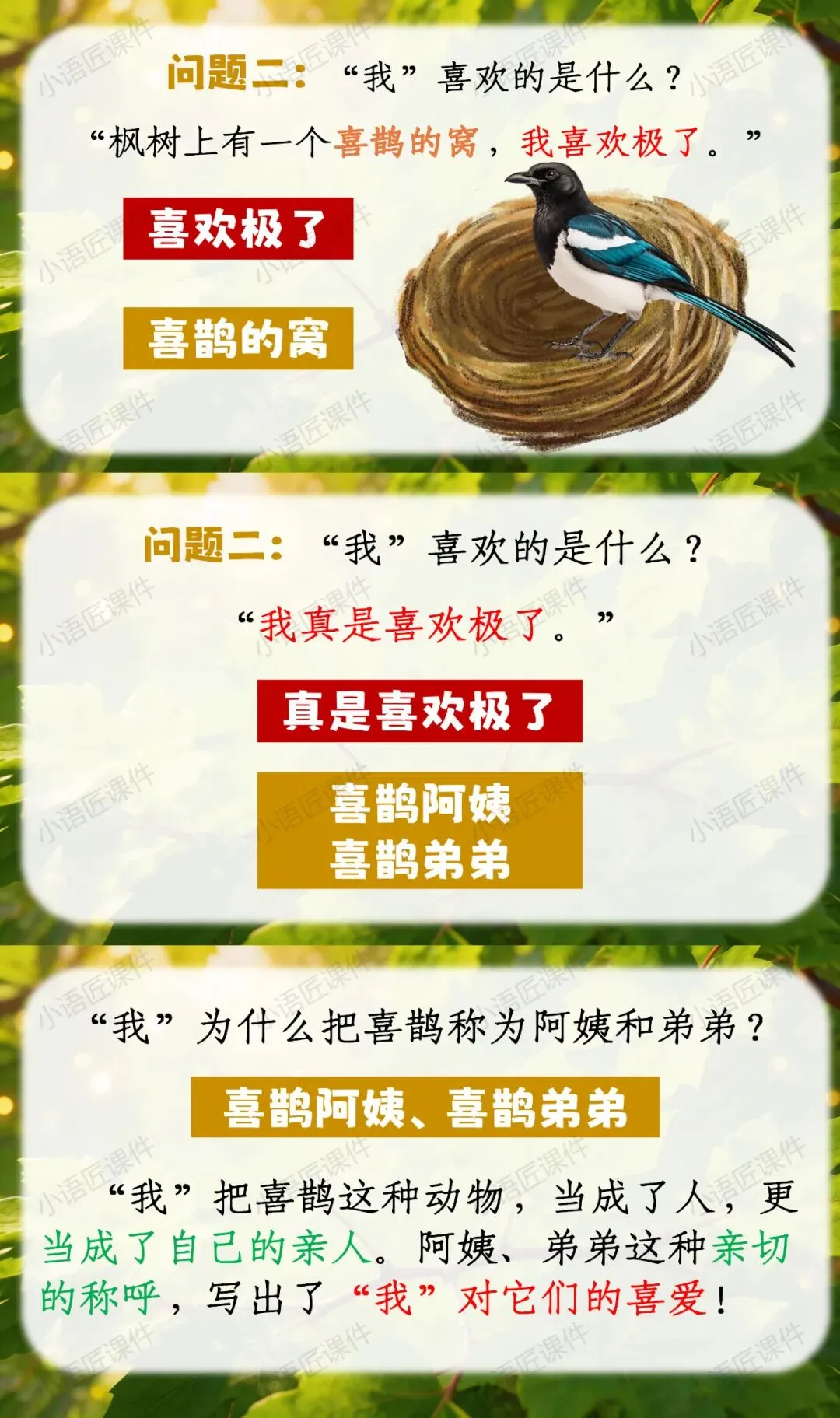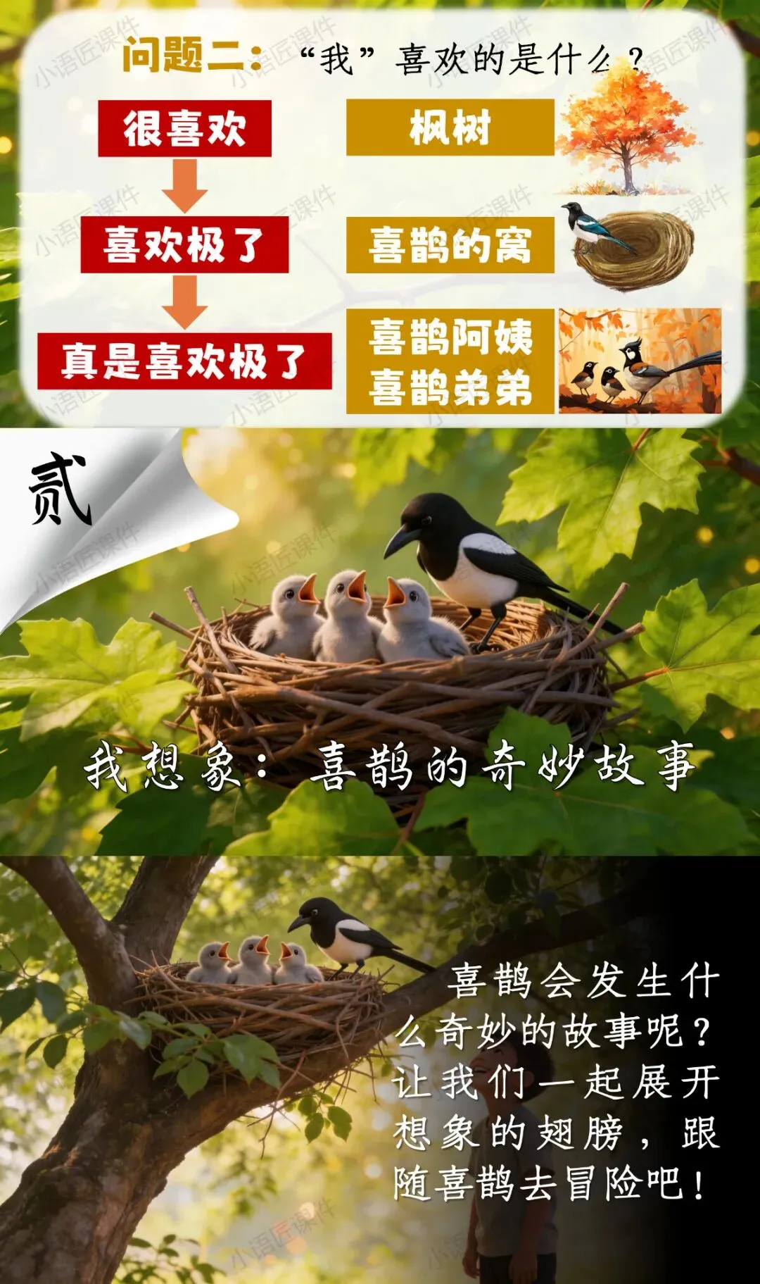 大家好,我是小语匠课件!今天给大家分享部编人教版二年级下册《枫树上的喜鹊》的独家课件。(课件获取方式见文末)
