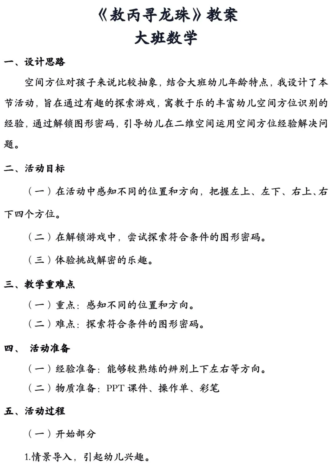 大班数学《敖丙寻龙珠》