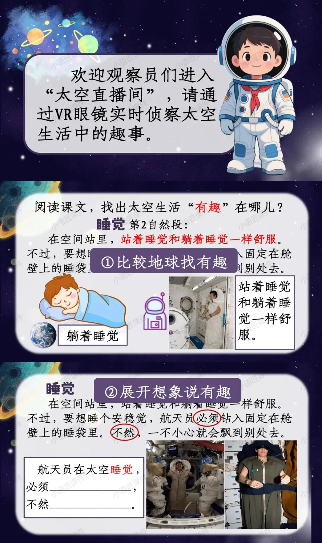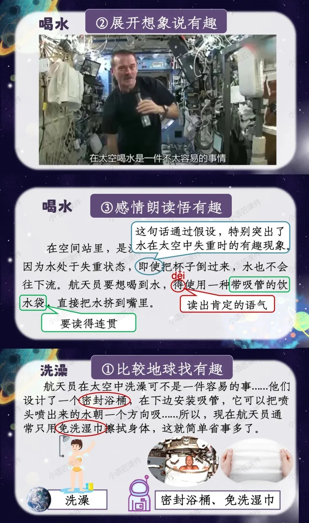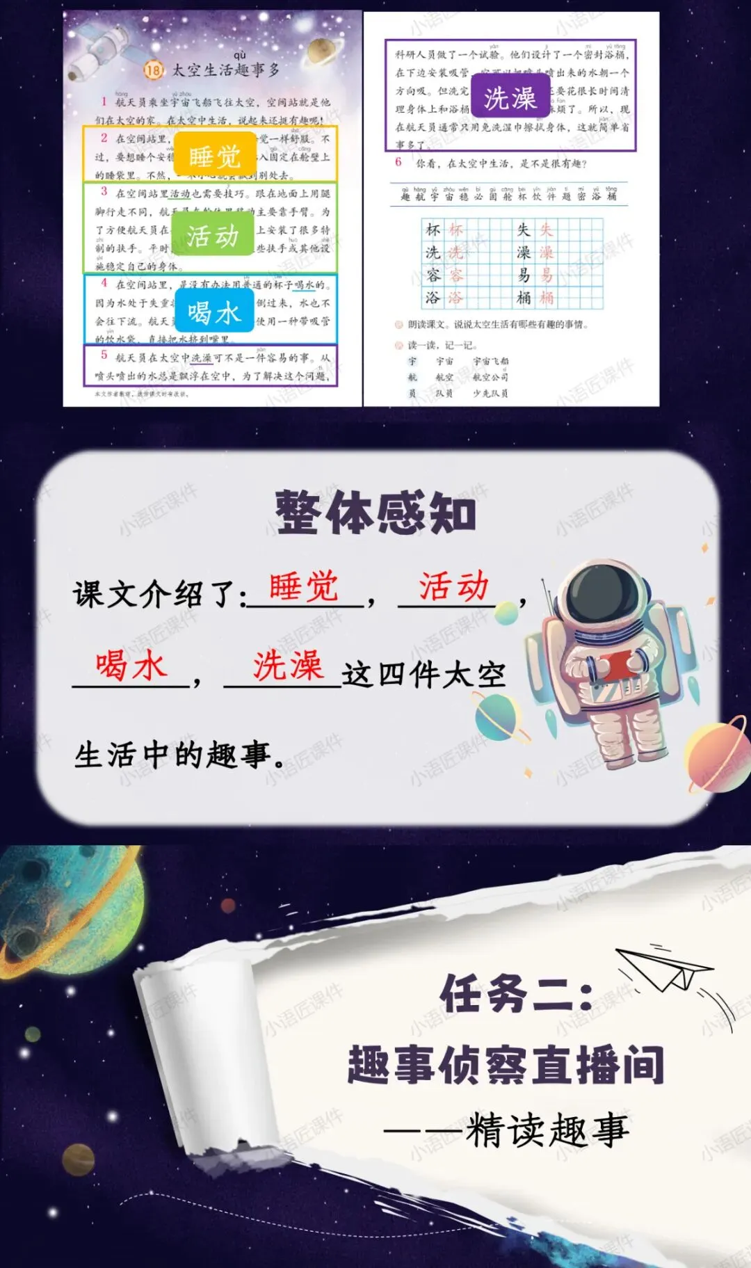 今天给大家分享的是部编人教版二年级下册《太空生活趣事多》的独家课件。