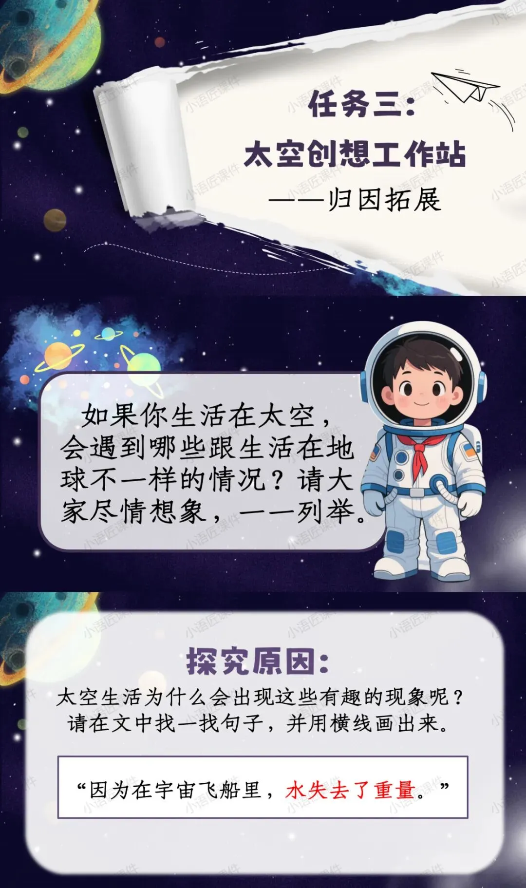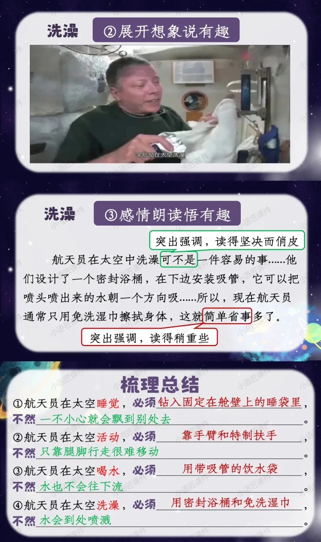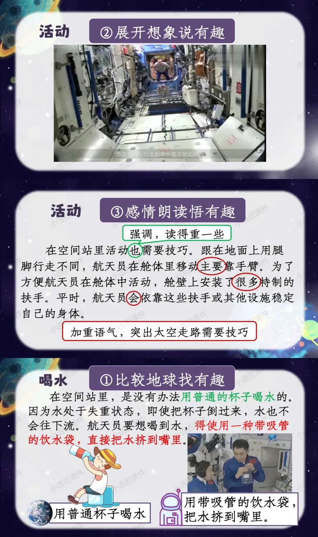 今天给大家分享的是部编人教版二年级下册《太空生活趣事多》的独家课件。