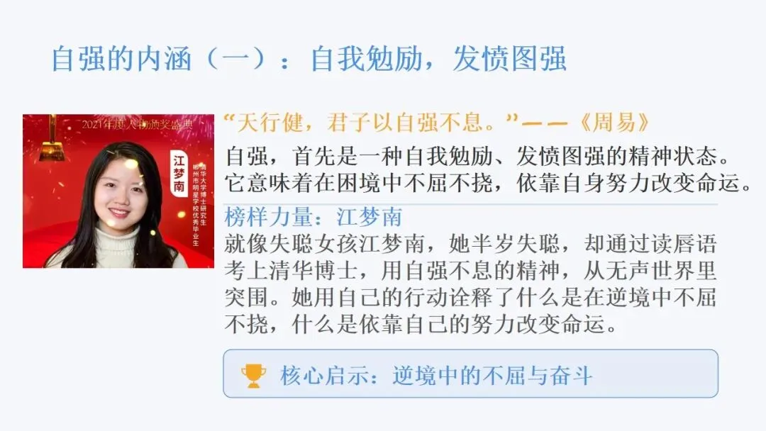 (二)新知讲授:品自强故事,悟自强内涵(10分钟)