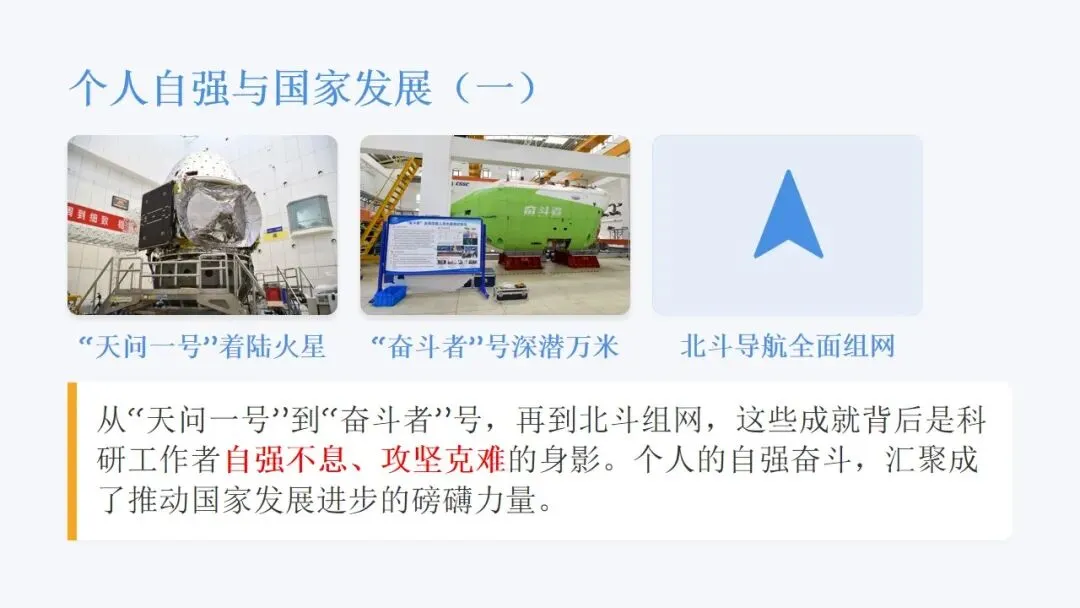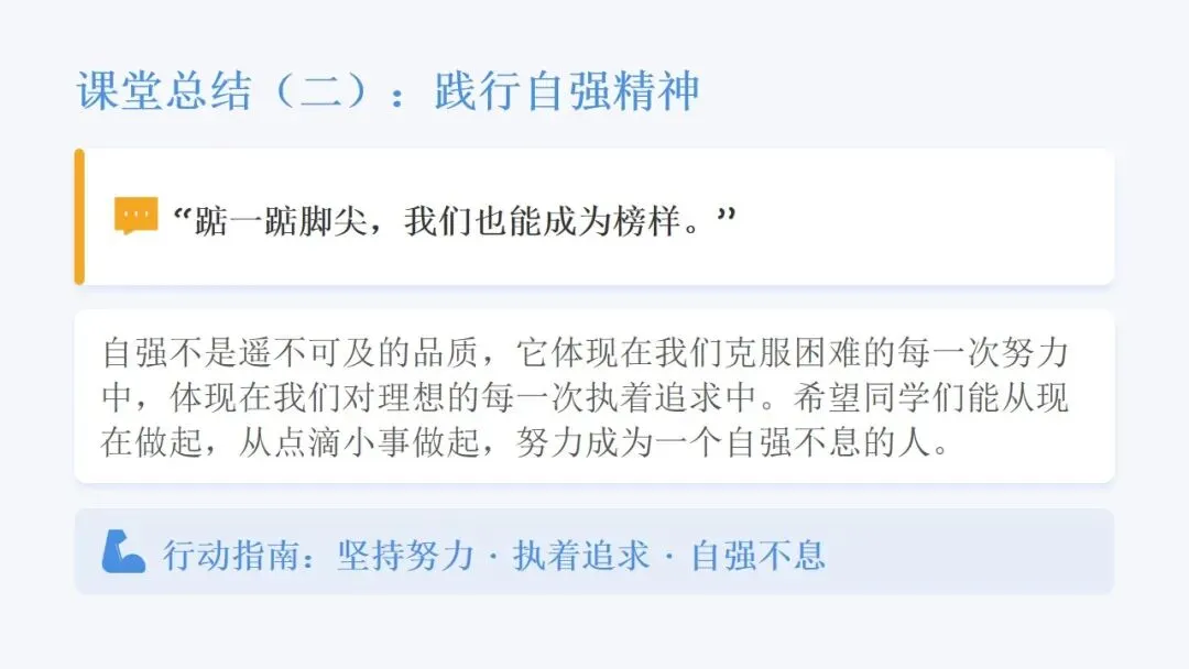 难点:将自强精神转化为实际行动,理解个人自强与国家发展的联系