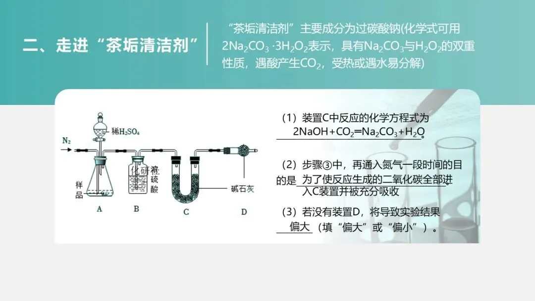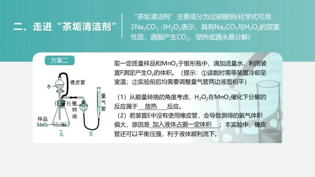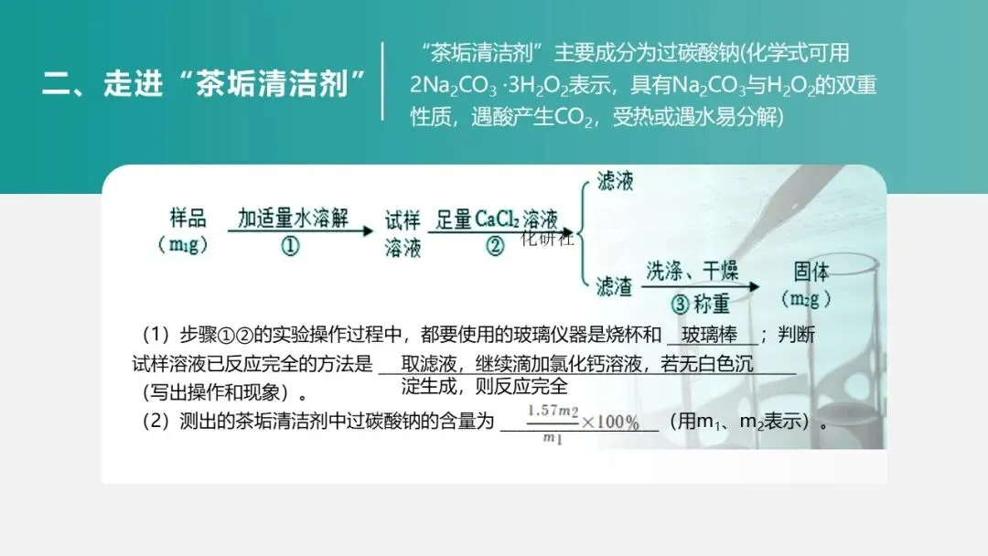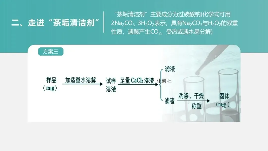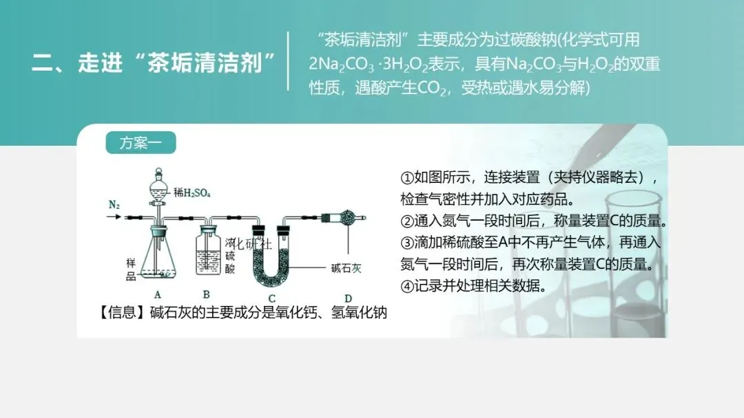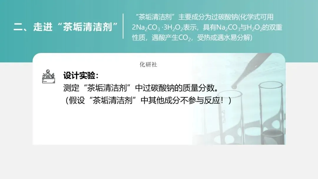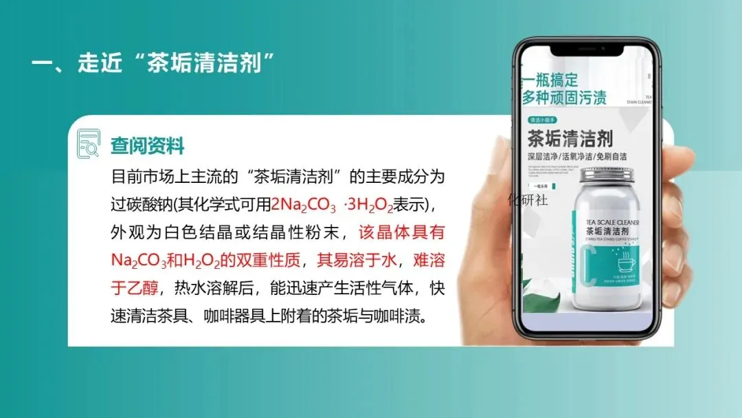 (二)环节一:走近 “茶垢清洁剂”—— 定性探究成分与性质(15 分钟)