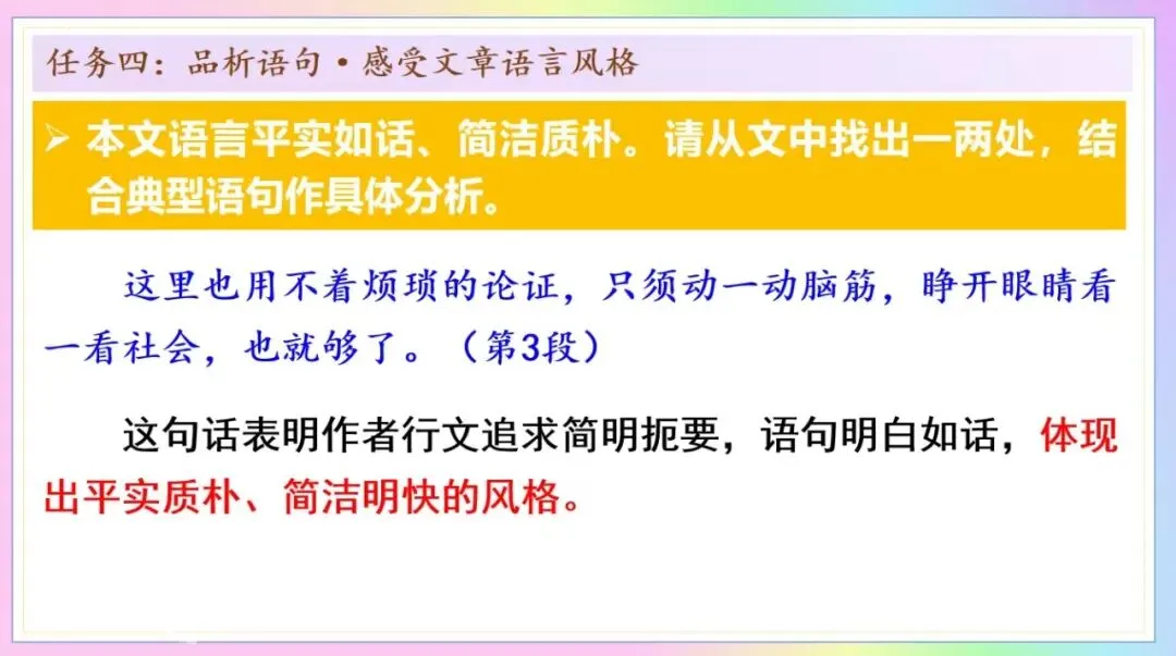 2.理解本文的说理特点,结合个人生活经历,体验,准确把握作者观点,思考文章的现实意义