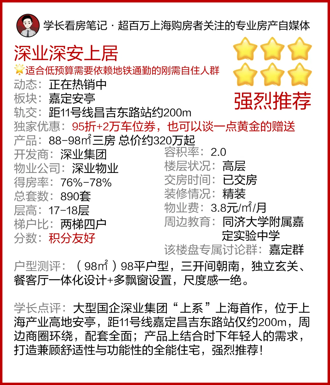 国企钜制+全屋精装+同济大学旁,「深嘉上府」正在认购中!内附一房一价表!