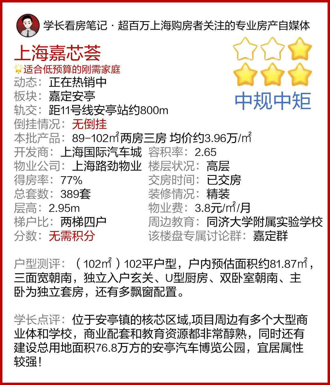 嘉定安亭「上海嘉芯荟」在售中!推出建面约89-102㎡两房三房,均价约3.96万/㎡!