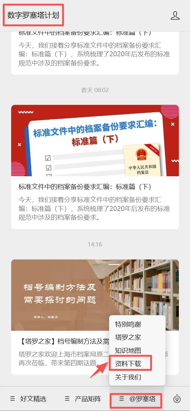 数字罗塞塔计划公众号菜单栏“@罗塞塔”——“资料下载”
