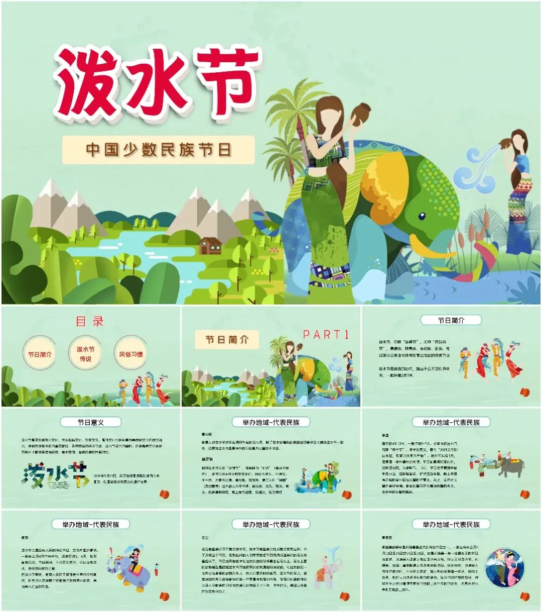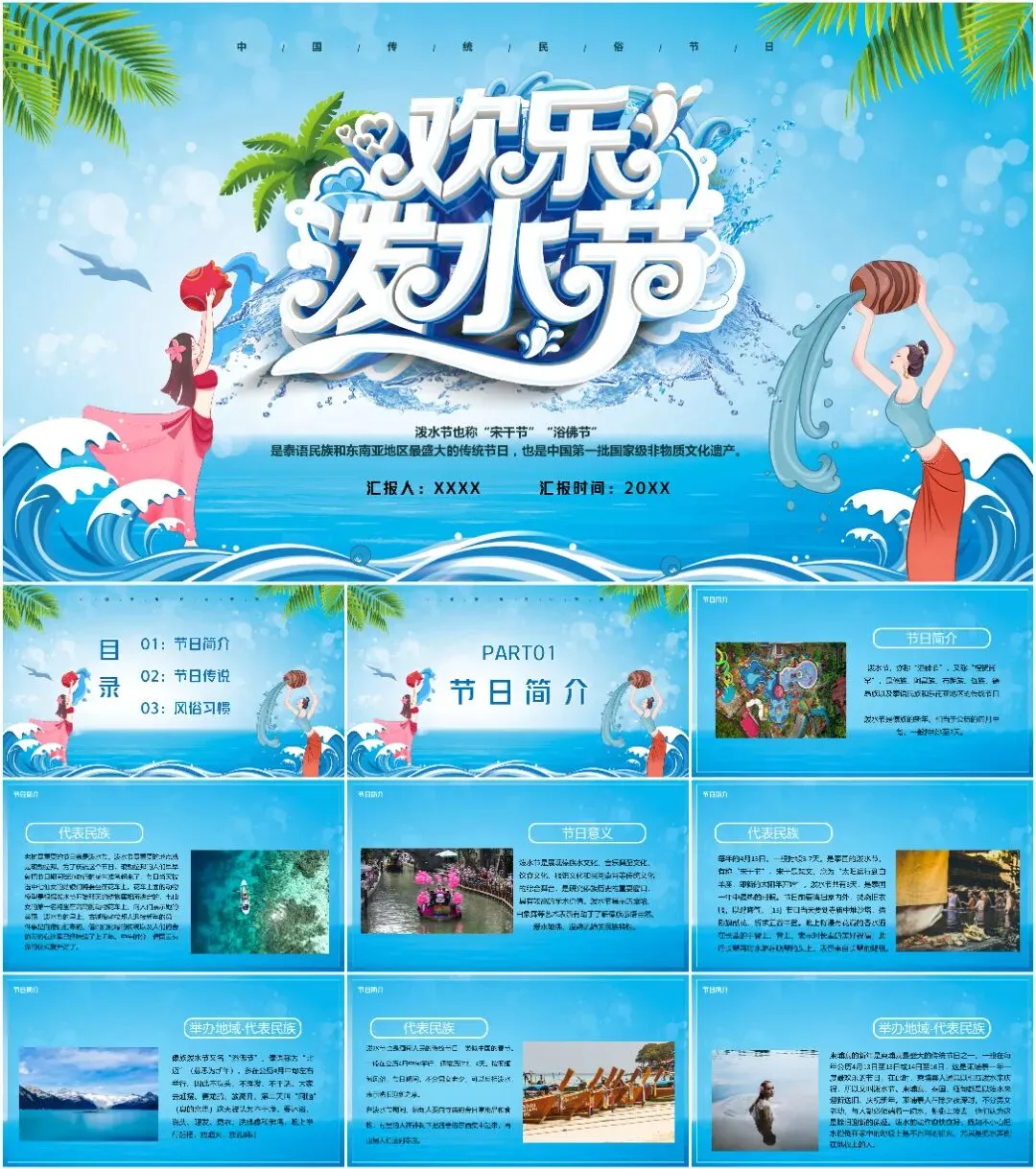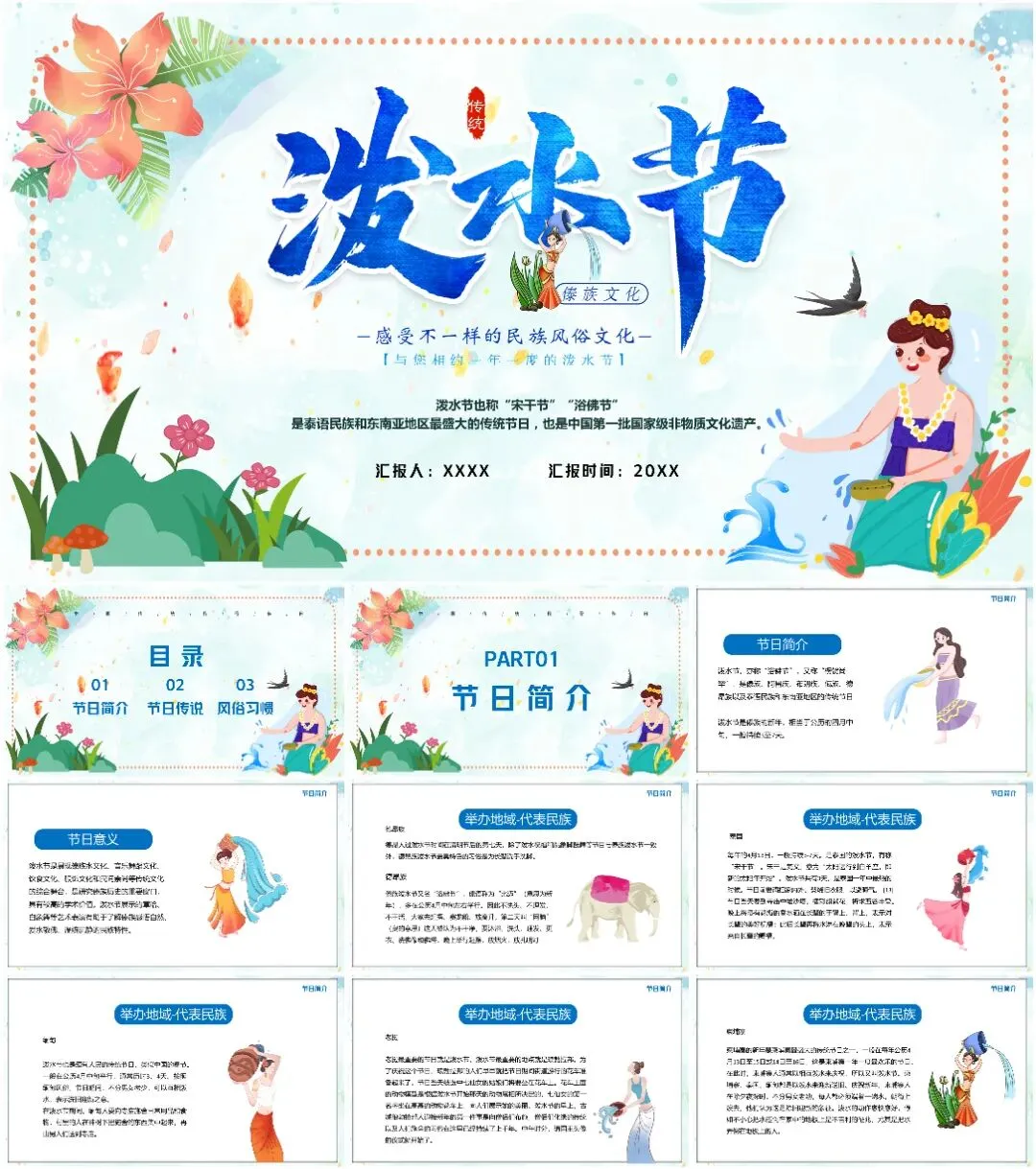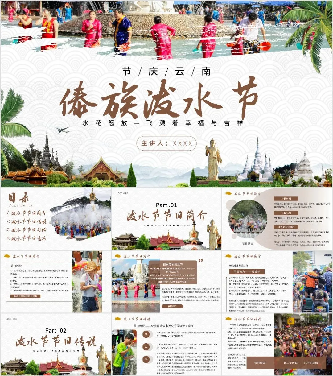 大家好,我是鱼主任,今天给大家带来最新10套高质量泼水节&傣族专题PPT课件!