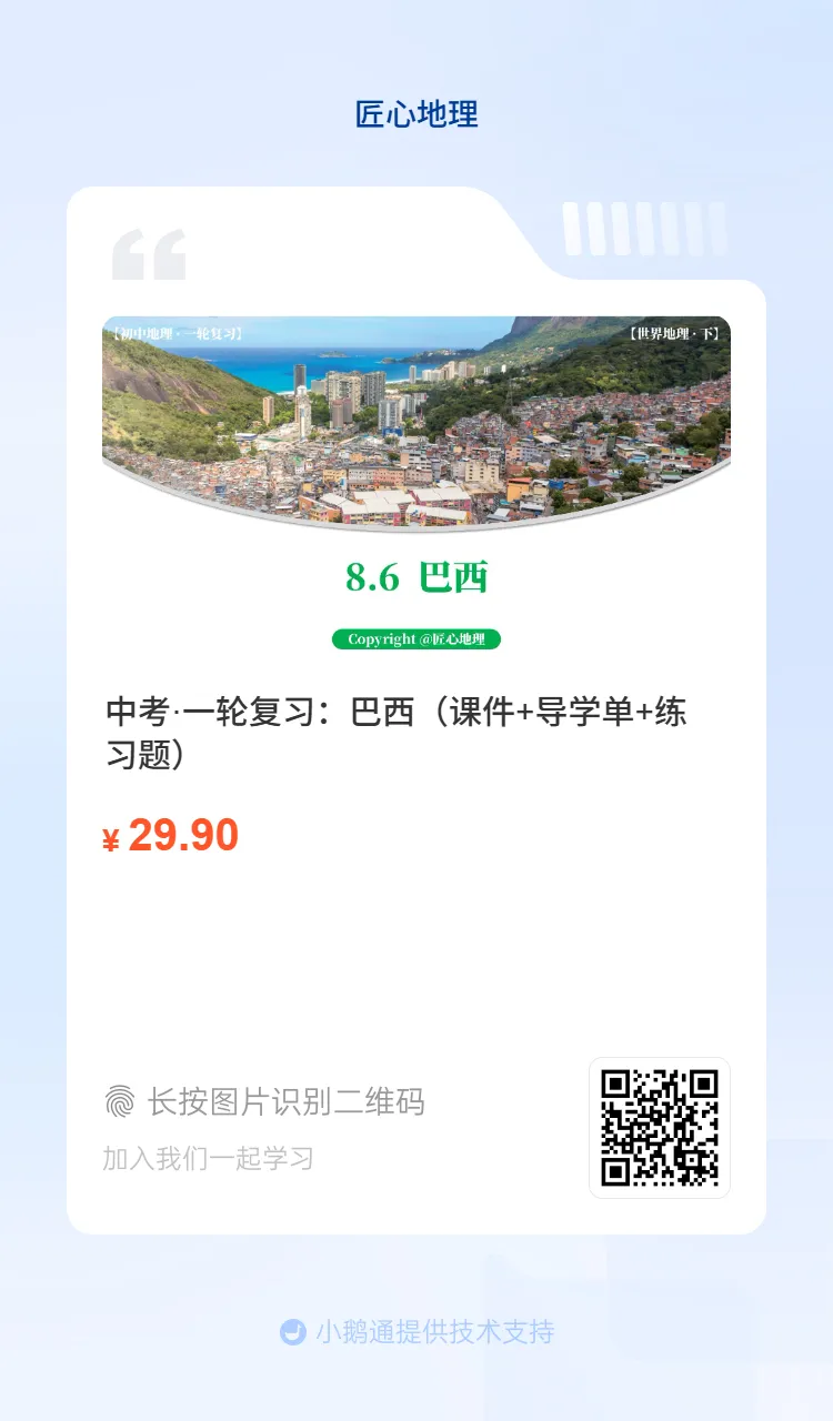 方式①:描下方二维码,获取新教材中考地理·一轮复习资料,含课件+导学单+练习题+送七八年级知识填图。(之前买过成套课件者,系统匹配优惠券,立减50)