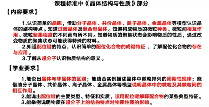 紧扣2017 版课标 2020 修订,明确晶体、配合物、超分子核心考点