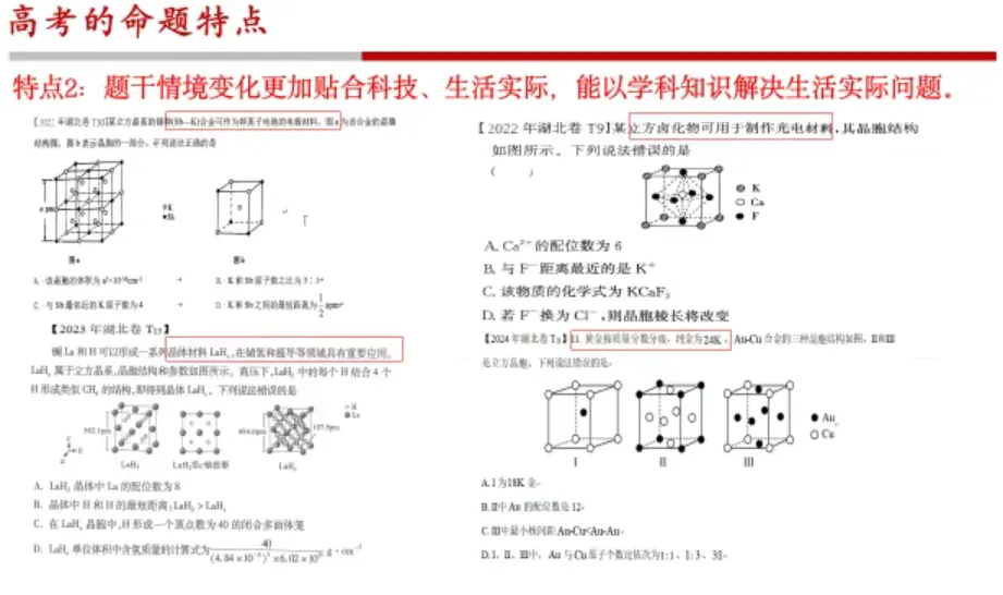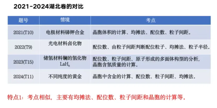 汇总2021–2024 湖北卷晶体高频考点: