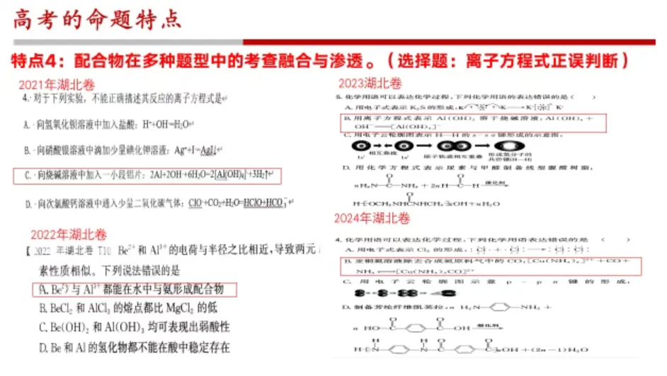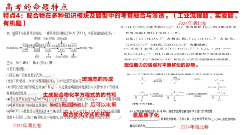 总结 4 大命题特点:考点稳定、情境创新、回归教材、配合物渗透