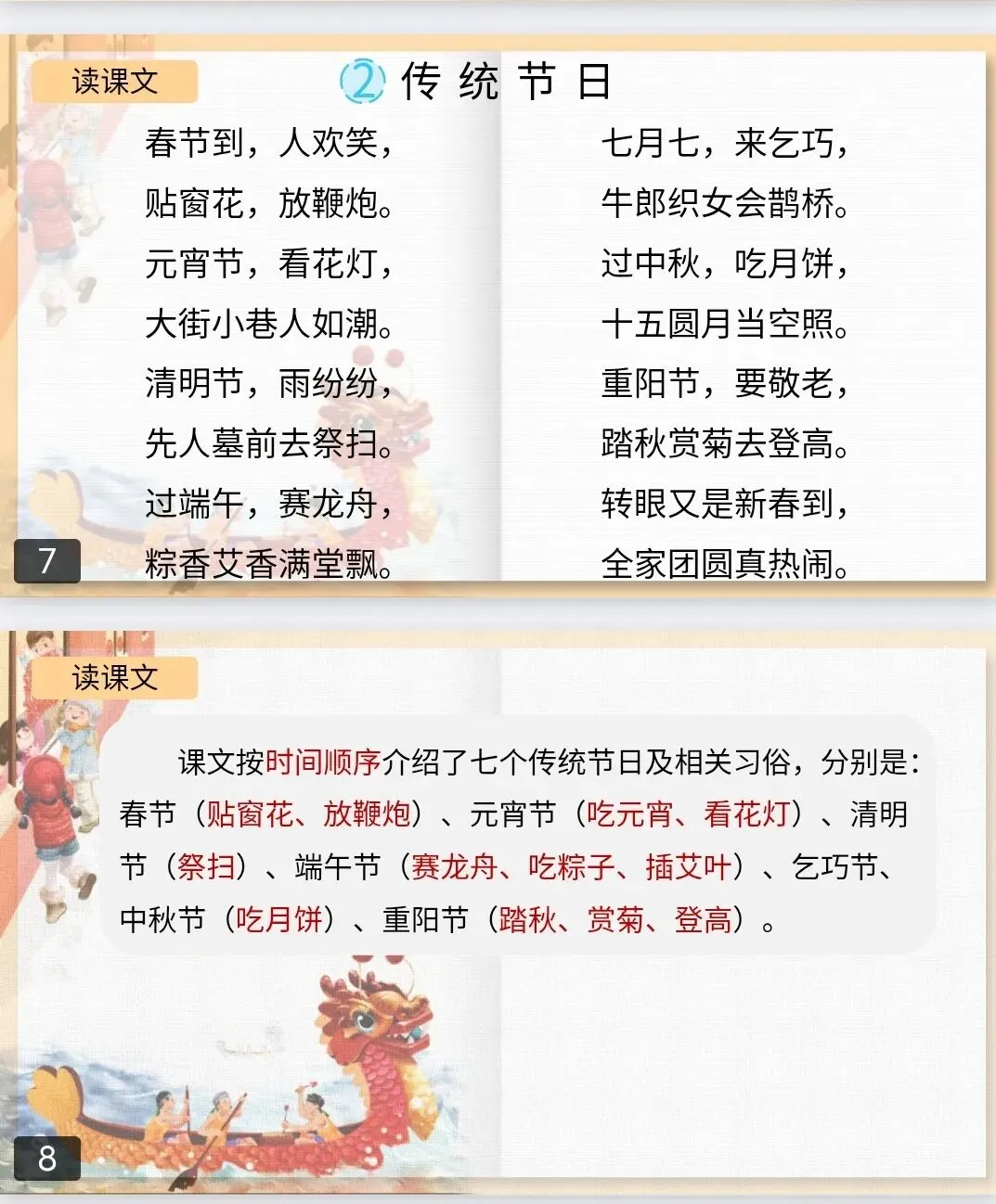 二年级语文下册《1-8单元晨读课件》电子版免费下载