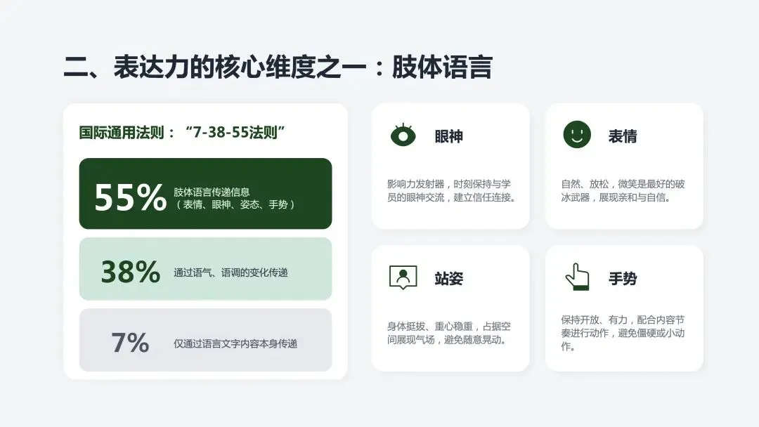 二、表达力的两个核心维度:肢体语言 + 语气语调