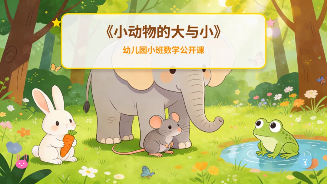 1. 播放 PPT 封面:教师提问:“小朋友们,今天老师带来了一个有趣的故事,故事里有很多可爱的小动物,我们一起来看看它们是谁吧!”