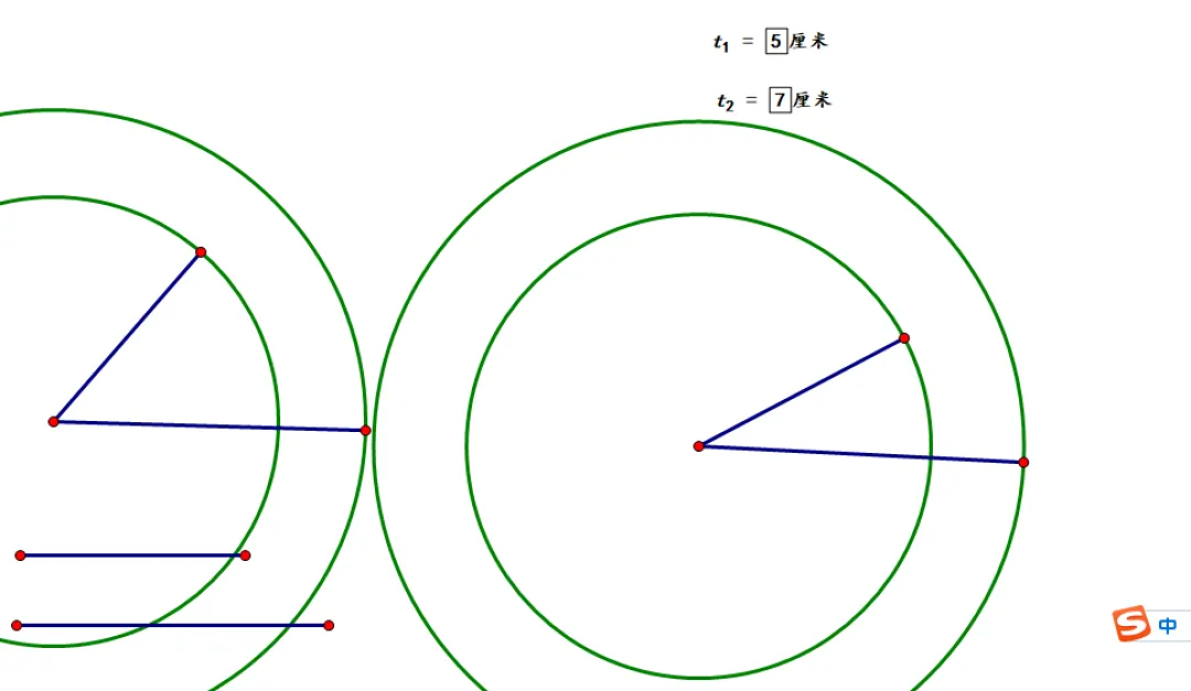 ①确定平行四边形的一个顶点,以已知线段为半径画两个圆。