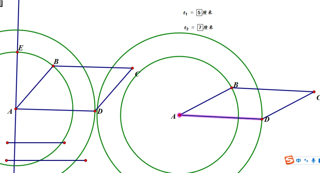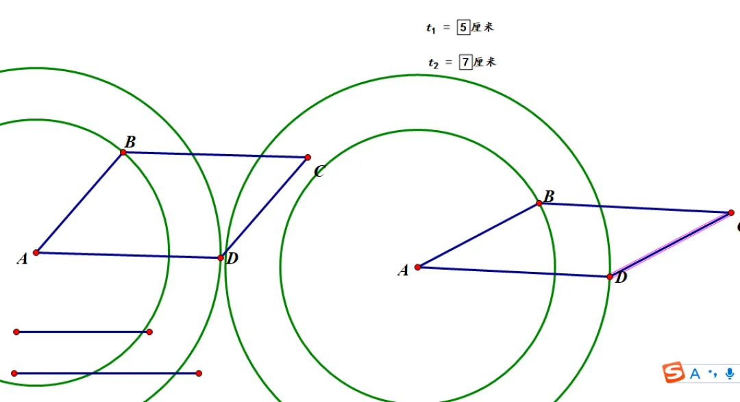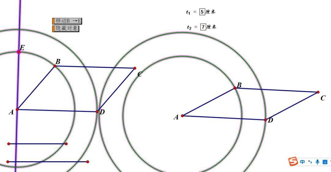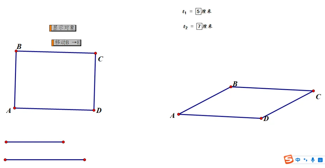 ④按下移动按钮,平行四边形变成矩形。也可手控移动点B。