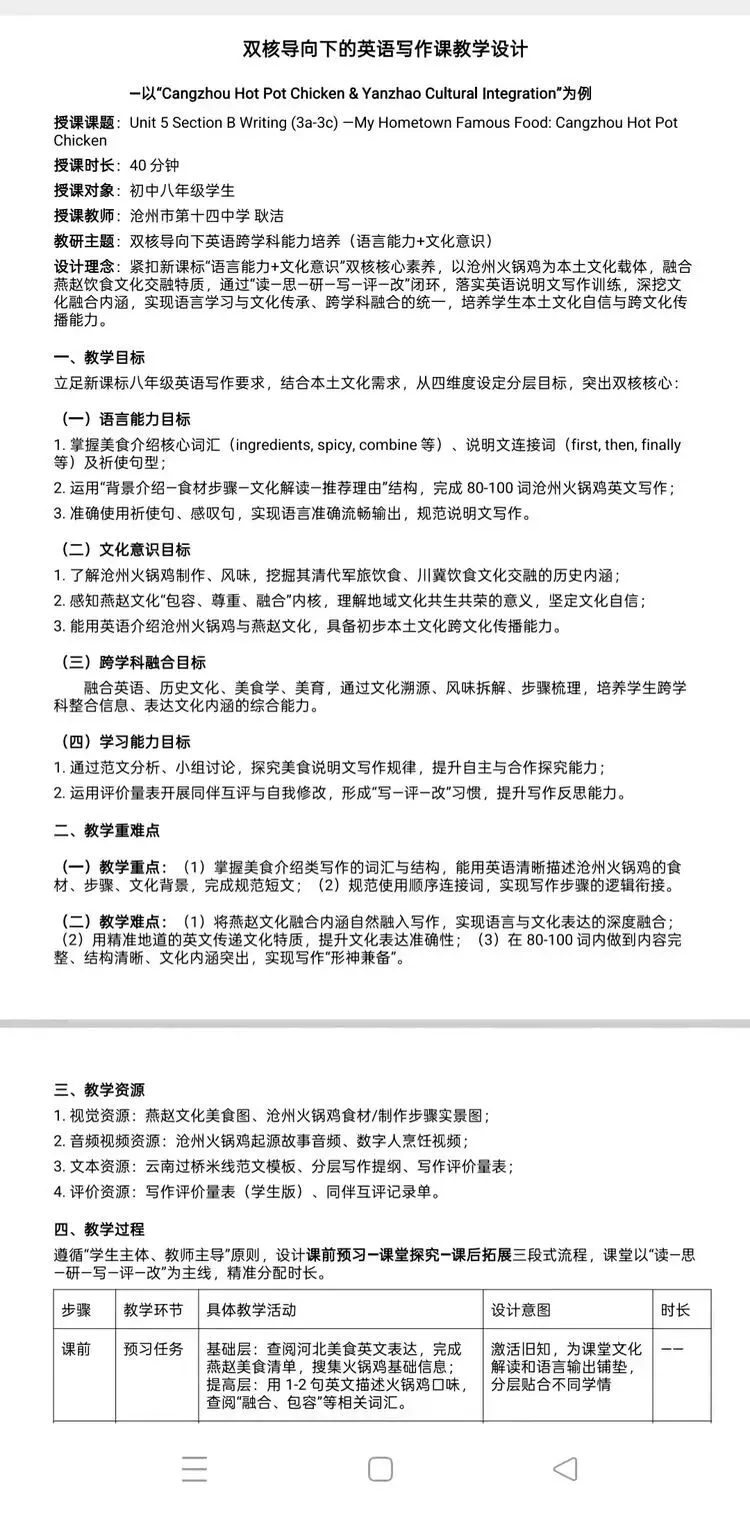 大家好!欢迎来到燕赵名师李敬谊老师工作室公众号,本期我们为您精心准备了新教材人教版八年级上册教学课件。本课是由工作室成员沧州市第十四中学耿洁老师设计的新教材人教版八年级上册 Unit5 What a delicious meal Section B 3a-3c的教学内容。本课遵循教学大纲要求,融入丰富的教学活动、互动环节与情景语篇,深度践行新课程标准,融入跨学科教学方式探索,巧妙运用 AI 技术赋能课堂创新,让 "双核导向下"英语教师跨学科能力 的理念贯穿教学全程,助力教学。
