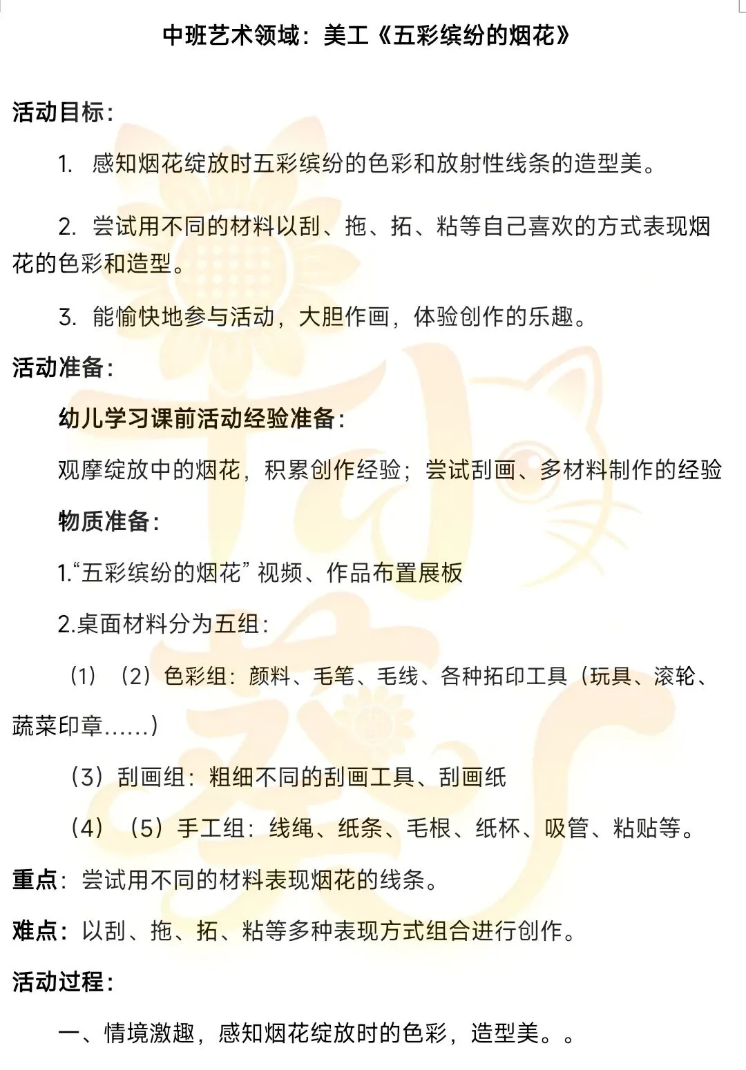 >中班艺术《五彩缤纷的烟花》教案+课件+课堂实录