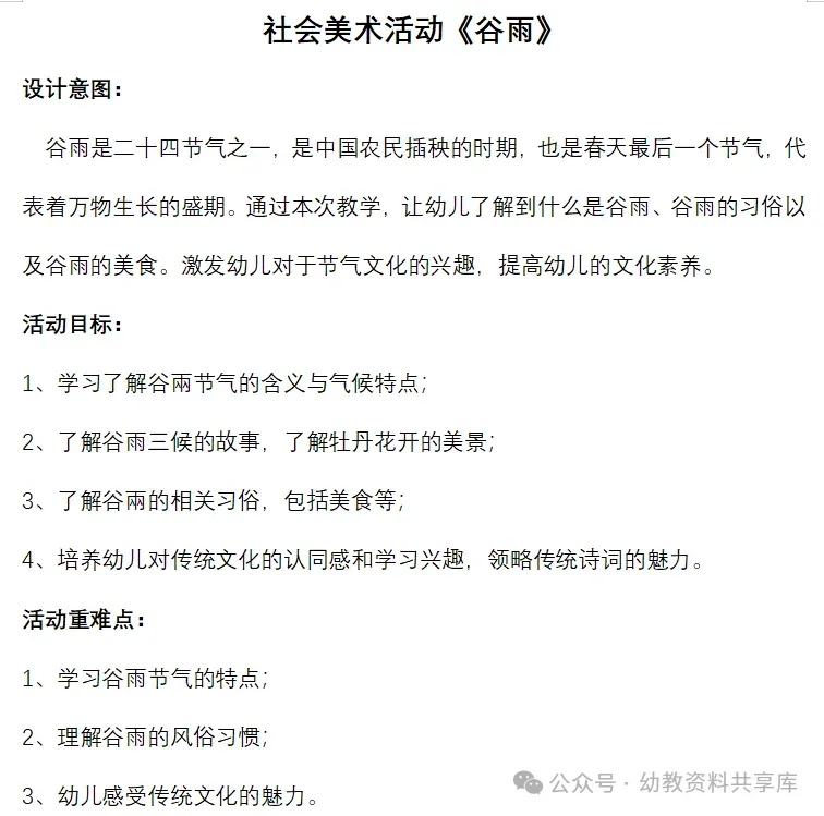 正值谷雨节气,幼儿园可充分利用这一教育契机,开展“谷雨”节气主题教育活动,引导孩子们了解节气、关注时令、热爱生活、热爱大自然。