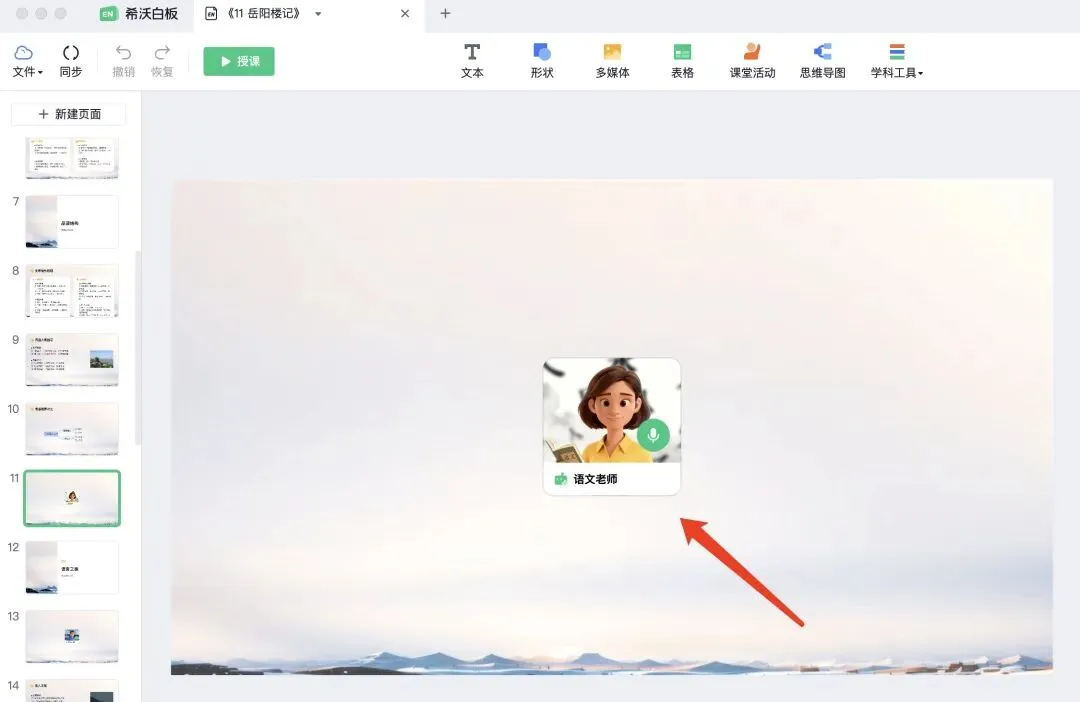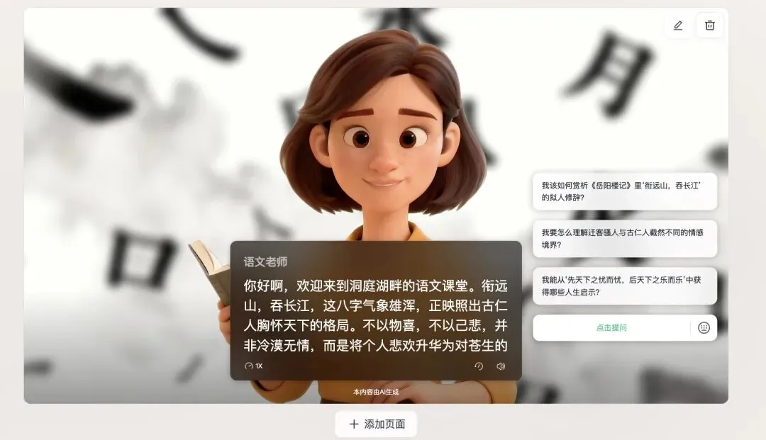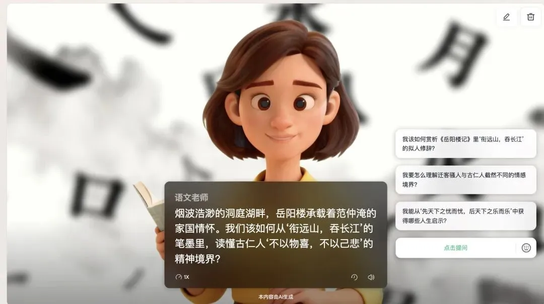生成后的界面。里面没有范仲淹,所以用了一个语文教师的形象。