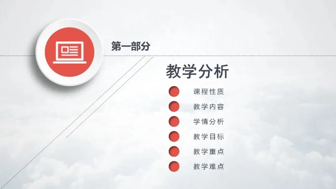 PPT 3 :第一部分:说教学分析,主要分析课程性质、教学内容、学情、教学目标以及重难点