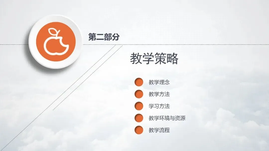 PPT 10:第二部分:教学策略,主要说教学理念、教学方法、学习方法、教学环境与资源、教学流程。