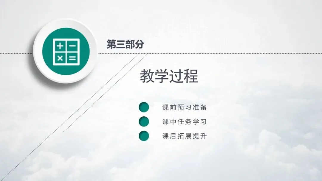 PPT 16:第三部分:说教学过程;主要细说课前预习准备、课中任务学习、课后拓展提升三个阶段。