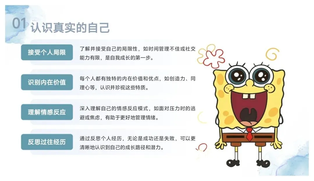 同时,自我评价也尤为重要,它和我们的个人成长、心理健康都息息相关。通过自我评价,我们能清晰识别自身的优势和劣势,为成长和进步设定明确的目标;而积极的自我评价,更能帮助我们建立自信,减少焦虑和抑郁情绪,让心理状态更健康。