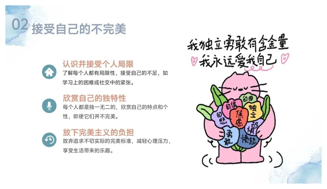 当前位置:首页>课件>小学心理健康教育主题班会课件PPT+发言稿——孩子: 别内耗了,我很喜欢不完美的自己!